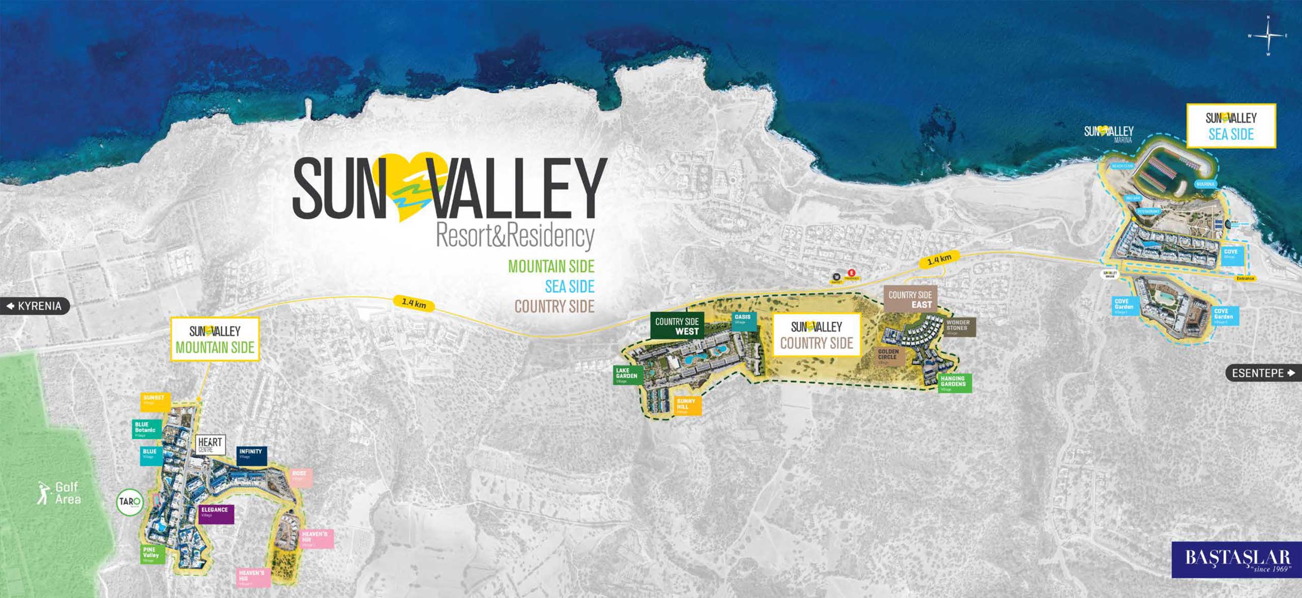 Mehr InformationenSun Valley ist eine „Mini-Stadt“-Gemeinschaft in Nordzypern, die aus drei Regionen besteht – Mountainside, Seaside und Countryside. Insgesamt umfasst sie 18 Dörfer mit hochwertigen Apartments, Villen und Stadthäusern.